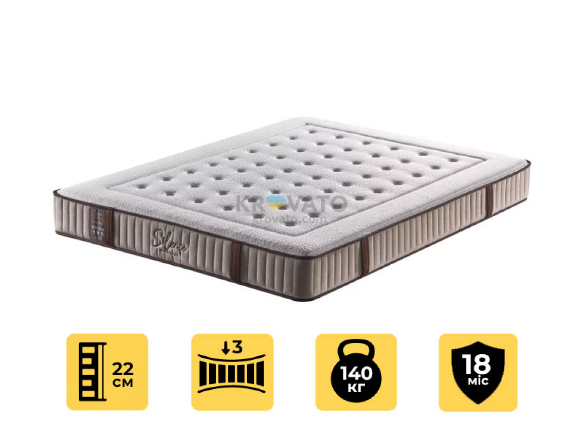 Silence Elara — це ортопедичний матрац без пружин, який стане надійною опорою для вашого тіла. Він ідеально підходить для активних людей, сімейних пар, а також для тих, хто цінує якісний, гіпоалергенний та зручний відпочинок. Матрац виготовлений із сучасних безпечних матеріалів і має збалансовану жорсткість — середню з обох боків.