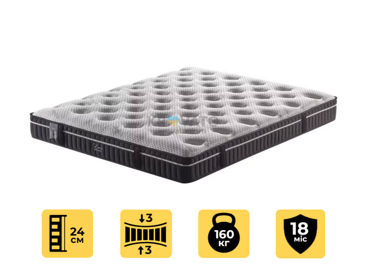 | Шари | 1. Трикотаж 2. Гібридна жорстка піна 3. Високоеластична піна з аргановою олією 4. Ізоляційний поліестер 5. Пружинний блок Pocket Spring |