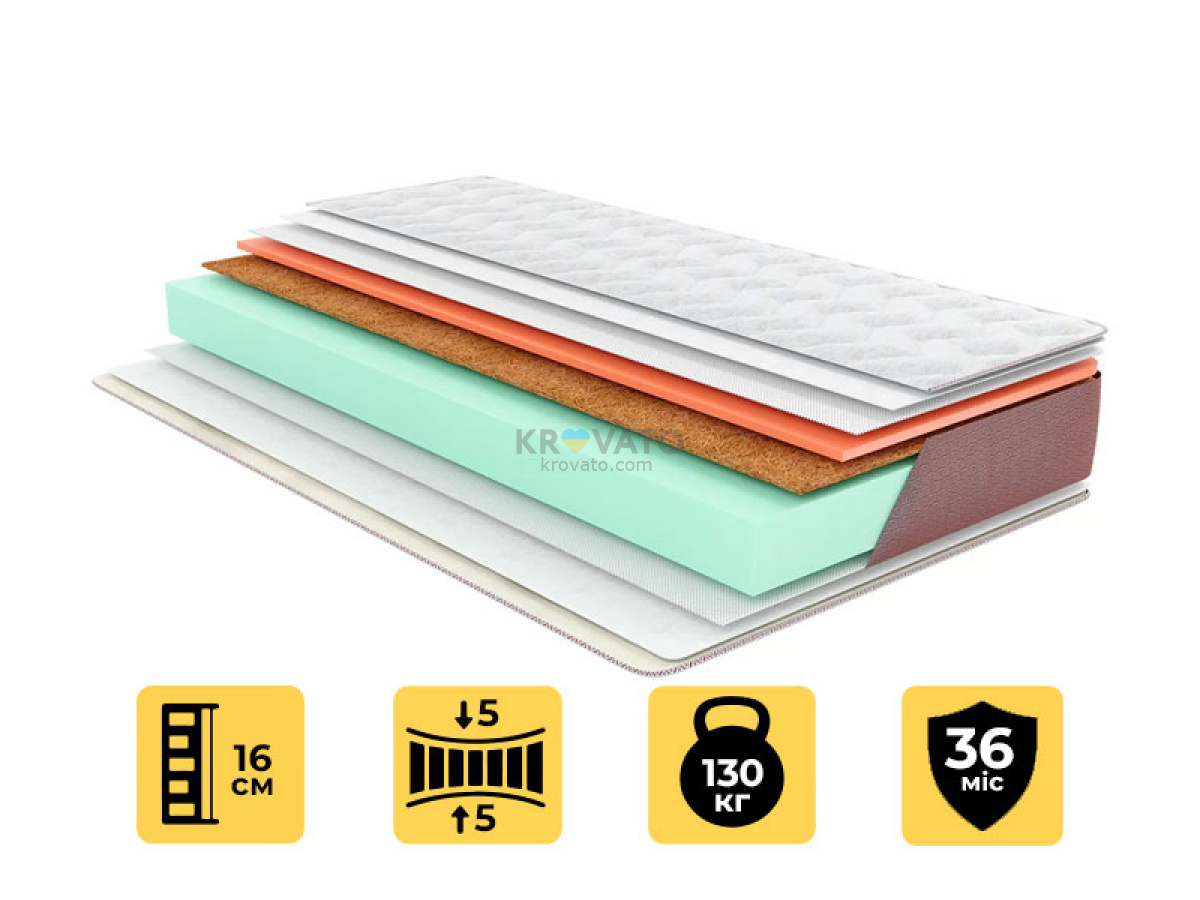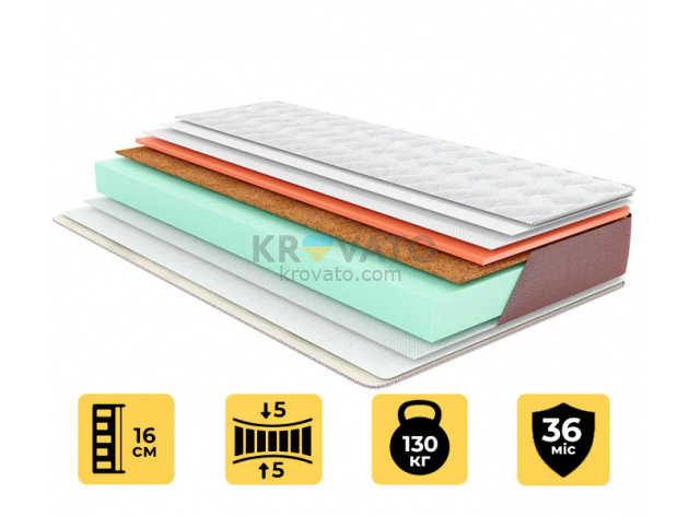 Кокосовая койра – материал, в виде волокон из кокосовой пальмы, который наделяет матрас ортопедическими свойствами. Он пропитан натуральным латексом, долговечный, экологически чистый, упругий, жесткий и не гигроскопичный. Благодаря этому он не будет преть и впитывать ненужные запахи.