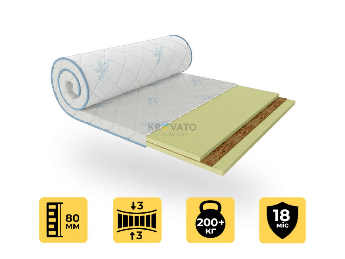 Втомилися прокидатися з відчуттям, ніби спали на камінні? Зустрічайте топер Sleep&Fly Mini Flex Кокос – ваш персональний квиток у світ комфортного сну! З висотою всього 8 см і жорсткістю 5/5, цей тонкий матрац забезпечує ідеальну підтримку для вашої спини. Забудьте про незручності та насолоджуйтесь здоровим відпочинком щоночі