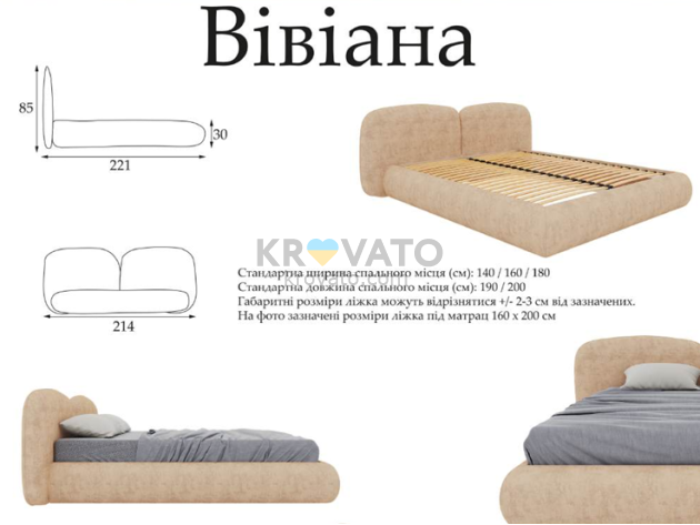 Ліжко «Вівіана» – це поєднання сучасного дизайну, практичності та комфорту. Завдяки оригінальному узголів'ю та якісним матеріалам, ця модель стане центральним елементом вашої спальні. Ліжко «Вівіана» забезпечує зручність, функціональність і довговічність, щоб кожна ніч була комфортною, а спальня виглядала затишною і стильною.