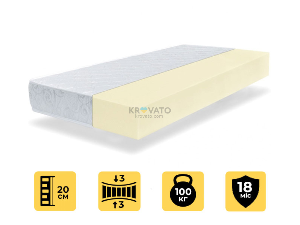 Безпружинний матрац на основі пінополіуретану виготовлений з якісних матеріалів згідно з технологією європейських стандартів виробництва. Виріб підходить для людей, які віддають перевагу відпочинку на помірно жорстких матрацах.