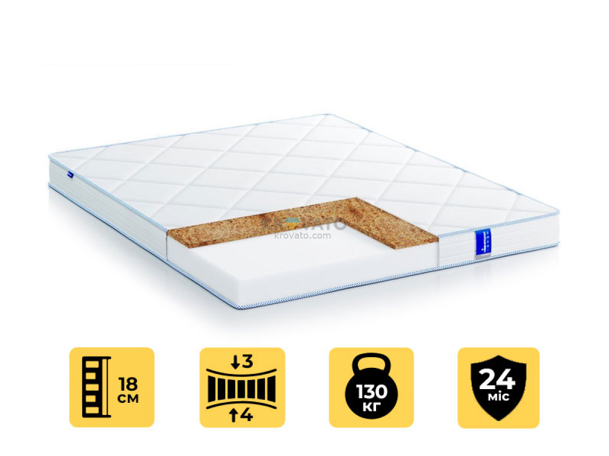 Двосторонній матрац Obeliks Elios. Основою матраца служить моноблок еластичного матеріалу Ortofoam у якого регулярна структура осередків (тобто всі осередки одного діаметру) - це дозволяє швидко відновлювати форму матраца. Наявність кокосового полотна додає матрацу підвищену жорсткість.
