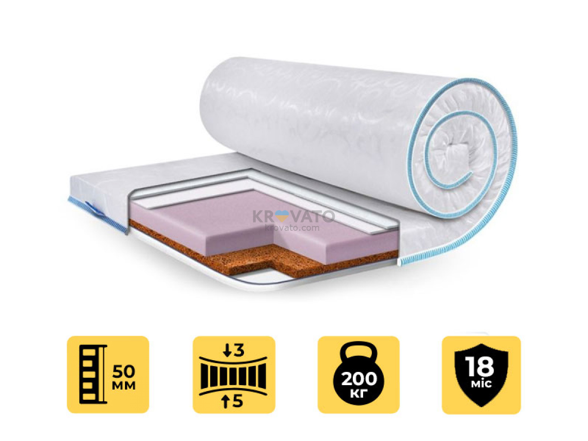 | Наповнення | Синтефлекс • Спанбонд • AiryFoam ~3 см • Кокос+латекс ~1 см • Спанбонд • Синтефлекс |
