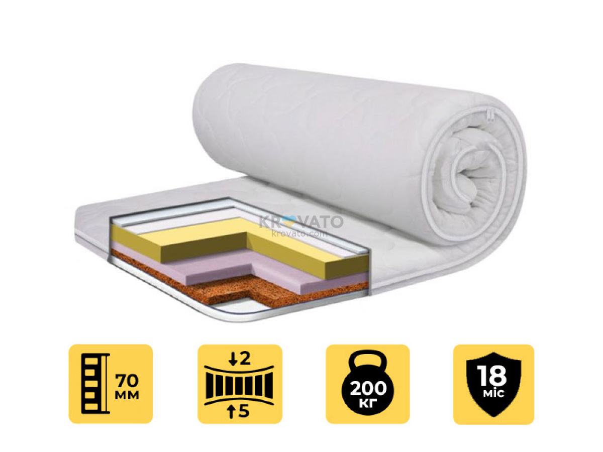 | Наповнення | Memory Foam 3 см; AiryFoam 2 см; кокос з латексом 1 см; синтефлекс; спанбонд |