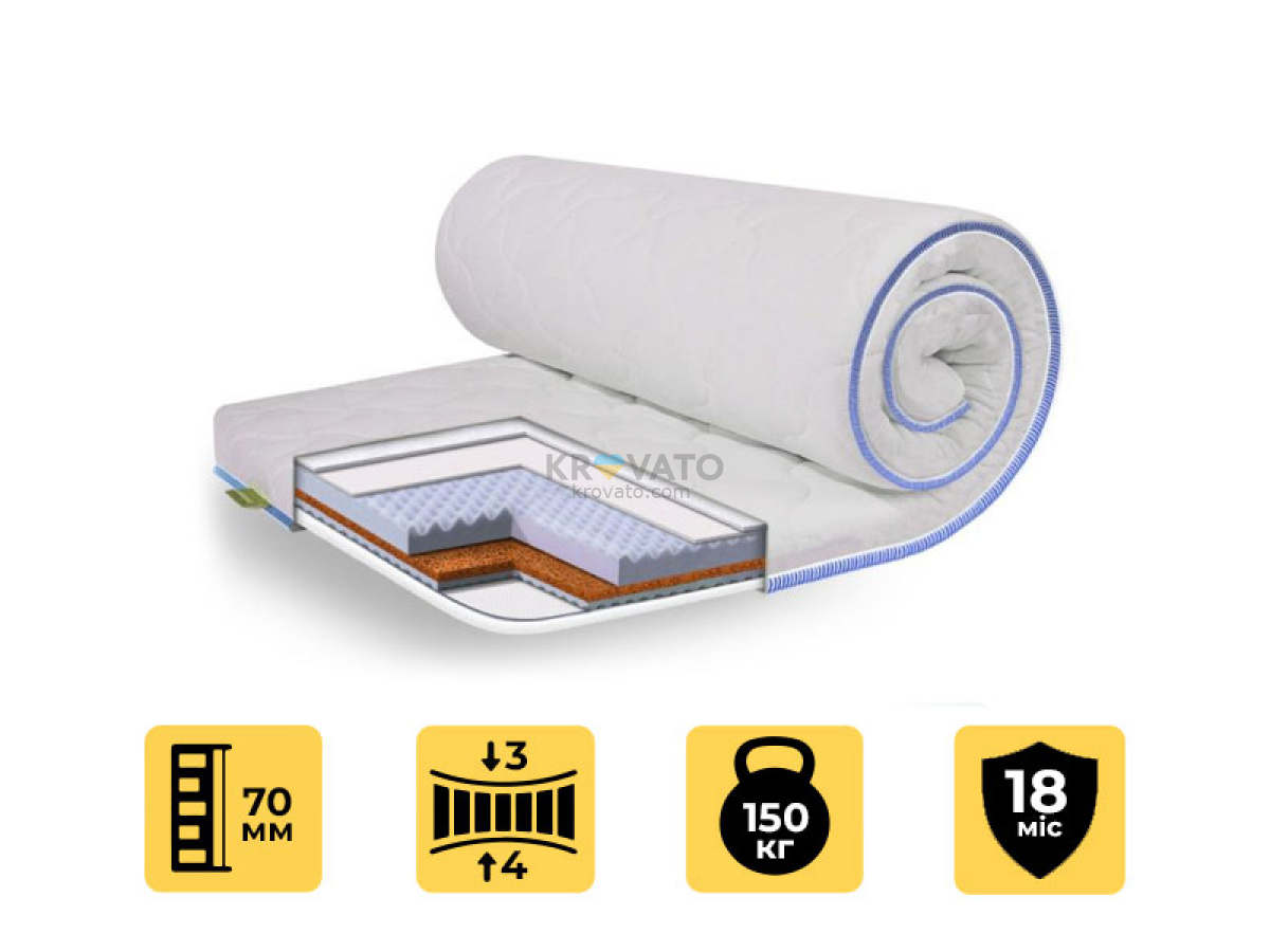 | Шари наповнення | трикотаж • синтефлекс • спанбонд • AiryFoam 3,5 см • кокос+латекс 1 см • AiryFoam 2 см • спанбонд • синтефлекс • трикотаж |
