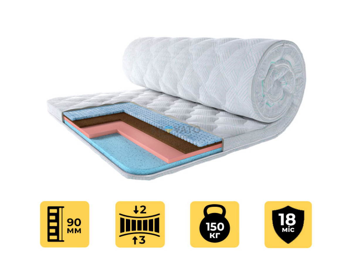 | Наполнение | FROSTY трикотаж • синтепон • спанбонд • Latex‑Gel • кокос‑койра • Extra Soft • Memory‑Gel • спанбонд • синтепон • FROSTY |
