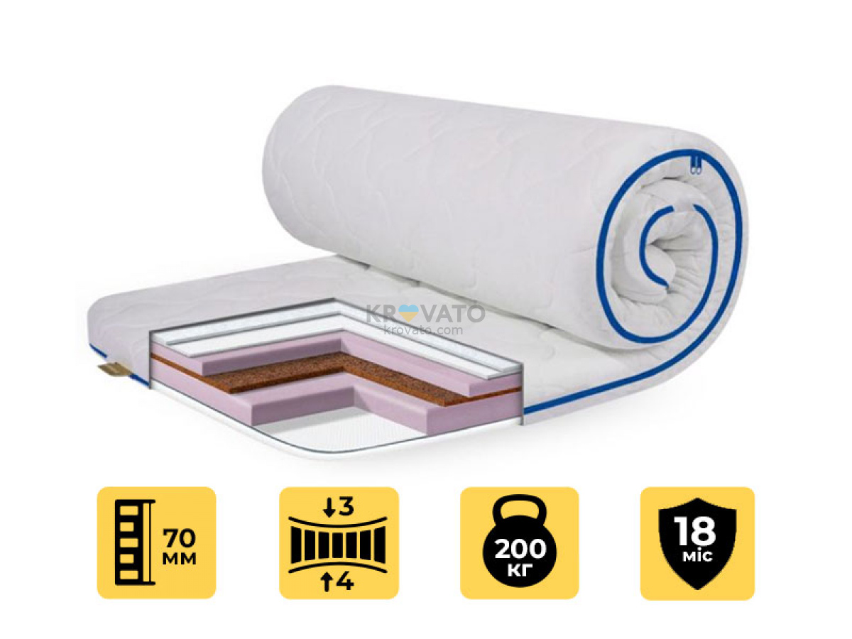Cocos‑Mix Трикотаж — универсальное решение для тех, кто ценит качественное выравнивание спального места и оптимальный баланс между мягкостью и поддержкой. Практичный выбор для дома, гостей, дачи или съёмного жилья.