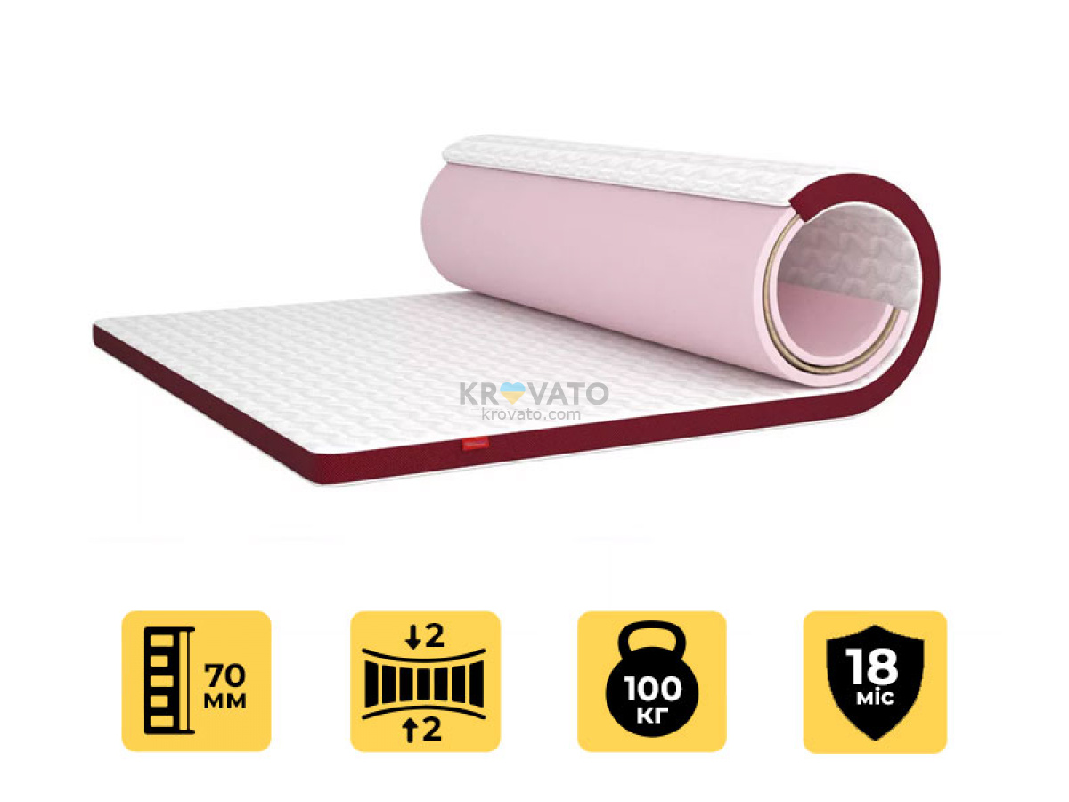 Матрас Flip Granat является частью серии тонких матрасов Flip от производителя Matroluxe. Каждая модель в этой коллекции имеет свой уникальный цвет и специально подобранное внутреннее наполнение. Для этой модели выбран гипоаллергенный материал Latex Foam, который отлично пропускает воздух, обладает ортопедическими свойствами и соответствует высоким экологическим стандартам. Топпер имеет двустороннюю конструкцию со средней жесткостью, что делает его универсальным вариантом для большинства пользователей.