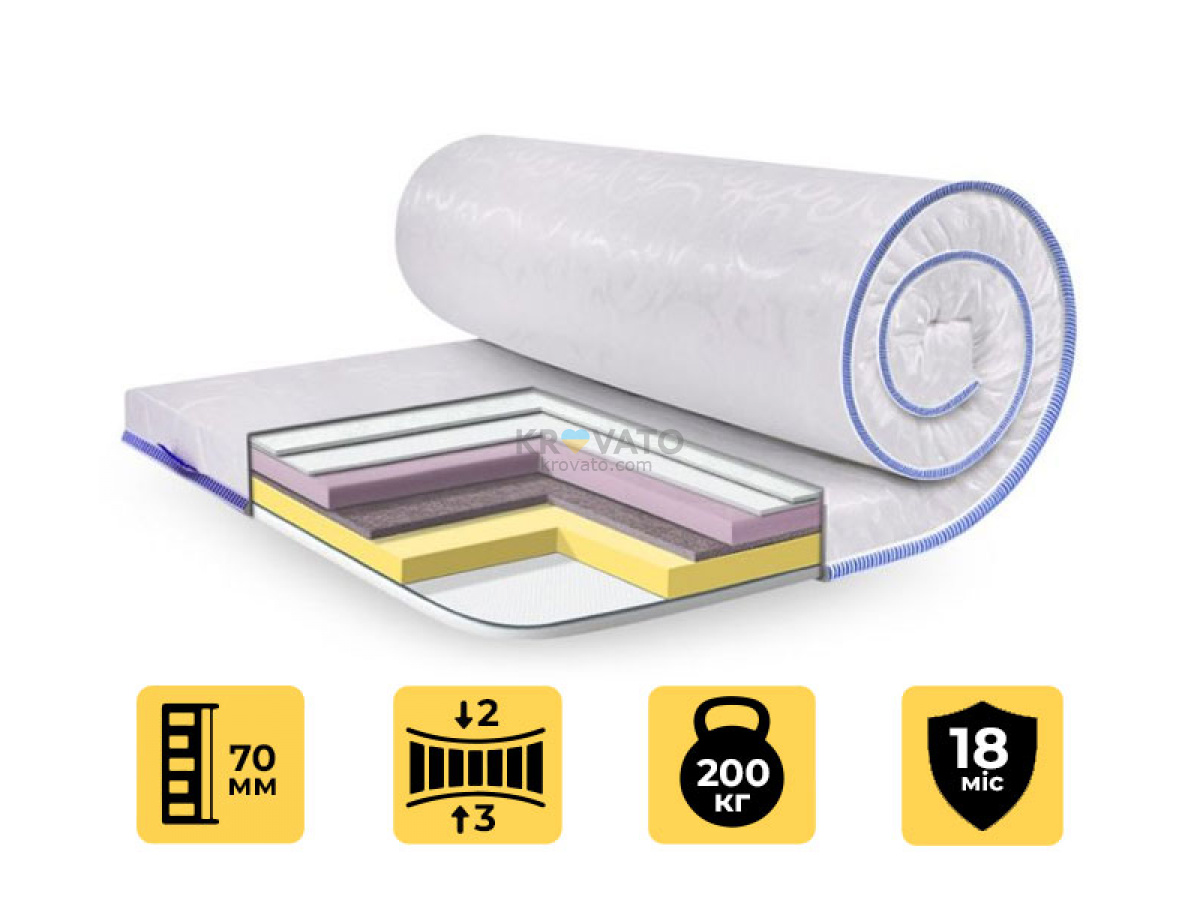 | Наполнение | Жаккард • синтефлекс • спанбонд • Memory Foam 3 см • термовойлок • AiryFoam 3 см • спанбонд • синтефлекс |
