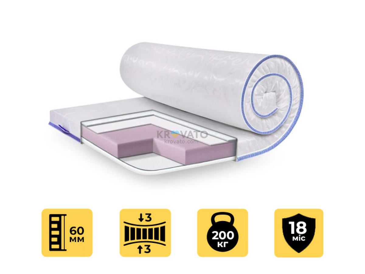 Чехол из жаккарда — износостойкий, дышащий, несъёмный. По углам — фиксаторы-резинки для надёжной фиксации на поверхности. Топпер легко скручивается в рулон и комплектуется фирменной сумкой для хранения или перевозки.