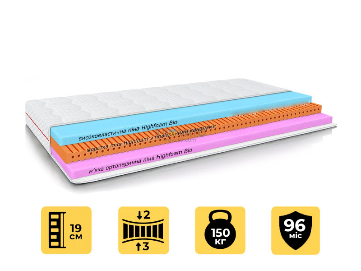 HIGHFOAM BIO™ - революційний продукт, виготовлений на основі рослинної сировини, дарованої нам природою. Створений за однойменною технологією, цей унікальний матеріал поєднує в собі прекрасні споживчі властивості еластичного пінополіуретану з цілющою силою природи. . З високим рівнем комфорту та ортопедичними властивостями пінополіуретану, HIGHFOAM BIO ™ стає ідеальним матеріалом для лікування та профілактики різноманітних захворювань. Саме тому він рекомендується фахівцями як основний наповнювач у матрацному виробництві. Використання матеріалів HIGHFOAM BIO™ знаменує початок нової ери якісного відпочинку. Інноваційна структура матеріалу HIGHFOAM BIO™ дозволяє вільно циркулювати повітря всередині матраців, створюючи максимально комфортні умови для відпочинку.