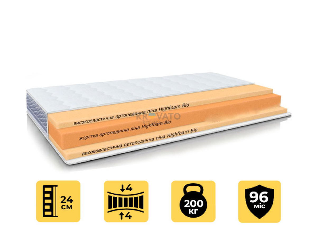 HIGHFOAM BIO™ - революційний продукт, виготовлений на основі рослинної сировини, дарованої нам природою. Створений за однойменною технологією, цей унікальний матеріал поєднує в собі прекрасні споживчі властивості еластичного пінополіуретану з цілющою силою природи. . З високим рівнем комфорту та ортопедичними властивостями пінополіуретану, HIGHFOAM BIO ™ стає ідеальним матеріалом для лікування та профілактики різноманітних захворювань. Саме тому він рекомендується фахівцями як основний наповнювач у матрацному виробництві. Використання матеріалів HIGHFOAM BIO™ знаменує початок нової ери якісного відпочинку. Інноваційна структура матеріалу HIGHFOAM BIO™ дозволяє вільно циркулювати повітря всередині матраців, створюючи максимально комфортні умови для відпочинку.