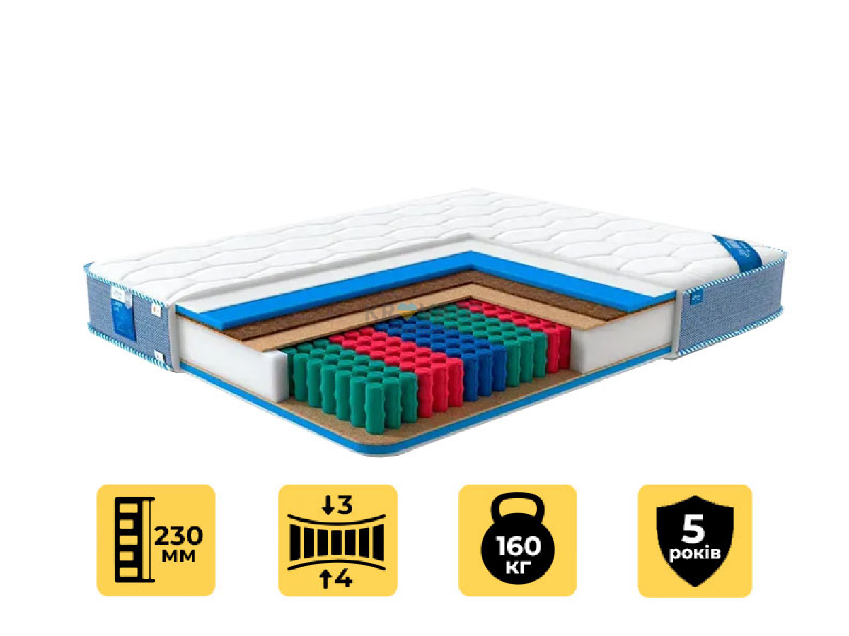 Матрас Larry Luxe от украинского бренда Daniro — это пружинный ортопедический матрас, который сочетает инновационные материалы и современные технологии для обеспечения максимального комфорта и здорового сна. Его высота составляет 23 см, а уровень жесткости — средний, что обеспечивает оптимальную поддержку тела.