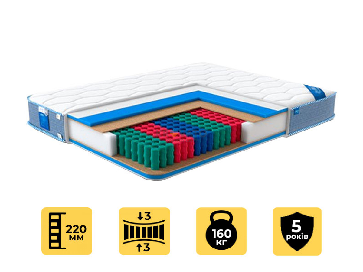 | Особливості | Ортопедичний, гіпоалергенний, ефект "Зима-Літо", 9 зон жорсткості |
