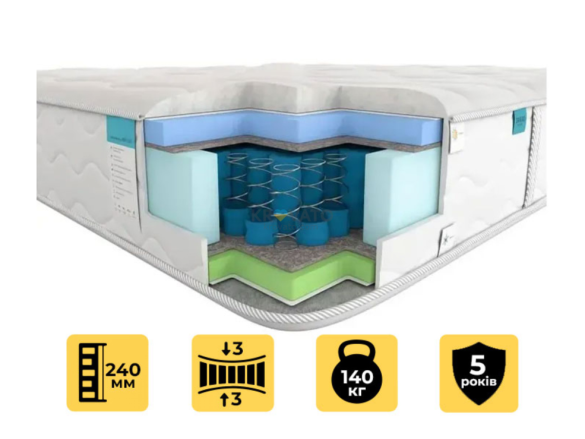 7-зональний пружинний блок Pocket Spring — це інноваційна система незалежних пружин, яка динамічно адаптується до кожної зони тіла: голови, плечей, попереку, тазу, стегон, колін і стоп.