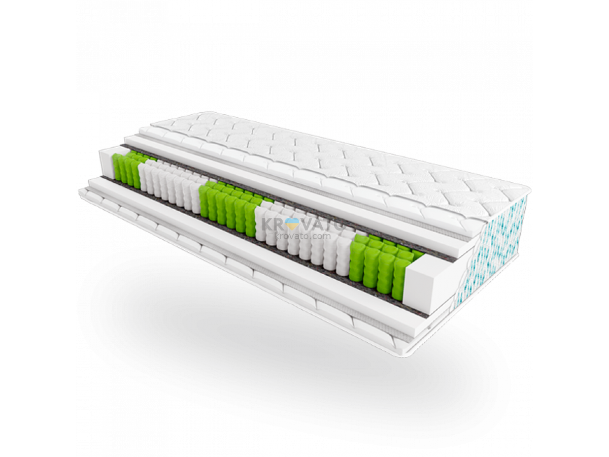 Пружинний блок із 5 зонами підтримки: кожна зона адаптується до частини тіла (голова, плечі, поперек, стегна, ноги). Посилена конструкція підвищує жорсткість і стабільність.