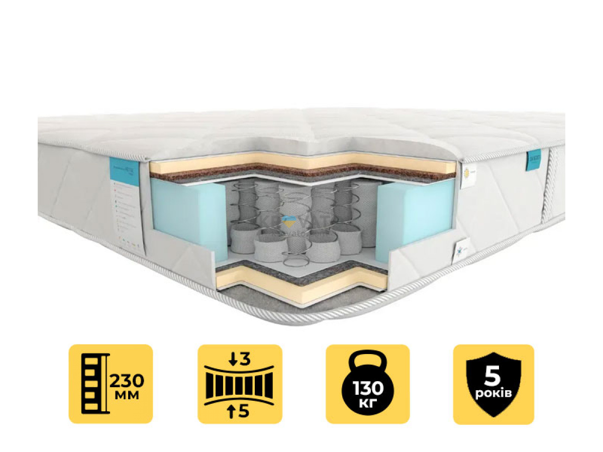 Латексована кокосова койра додає структурі жорсткості та стійкості. Це натуральний матеріал із високою зносостійкістю та чудовою вентиляцією.