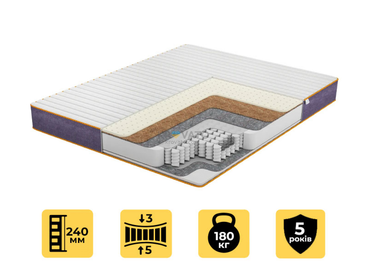 | Наповнення | Latex Foam maxi, Coconut Fiber, PrimeFelt, Pocket Spring, PrimeFelt, Air Foam, MaxisEdge |